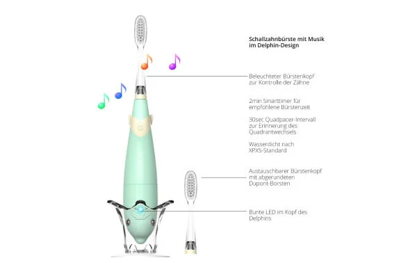 Die farbenfrohe LED Sonic Schallzahnbürste im Delphin-Design macht das