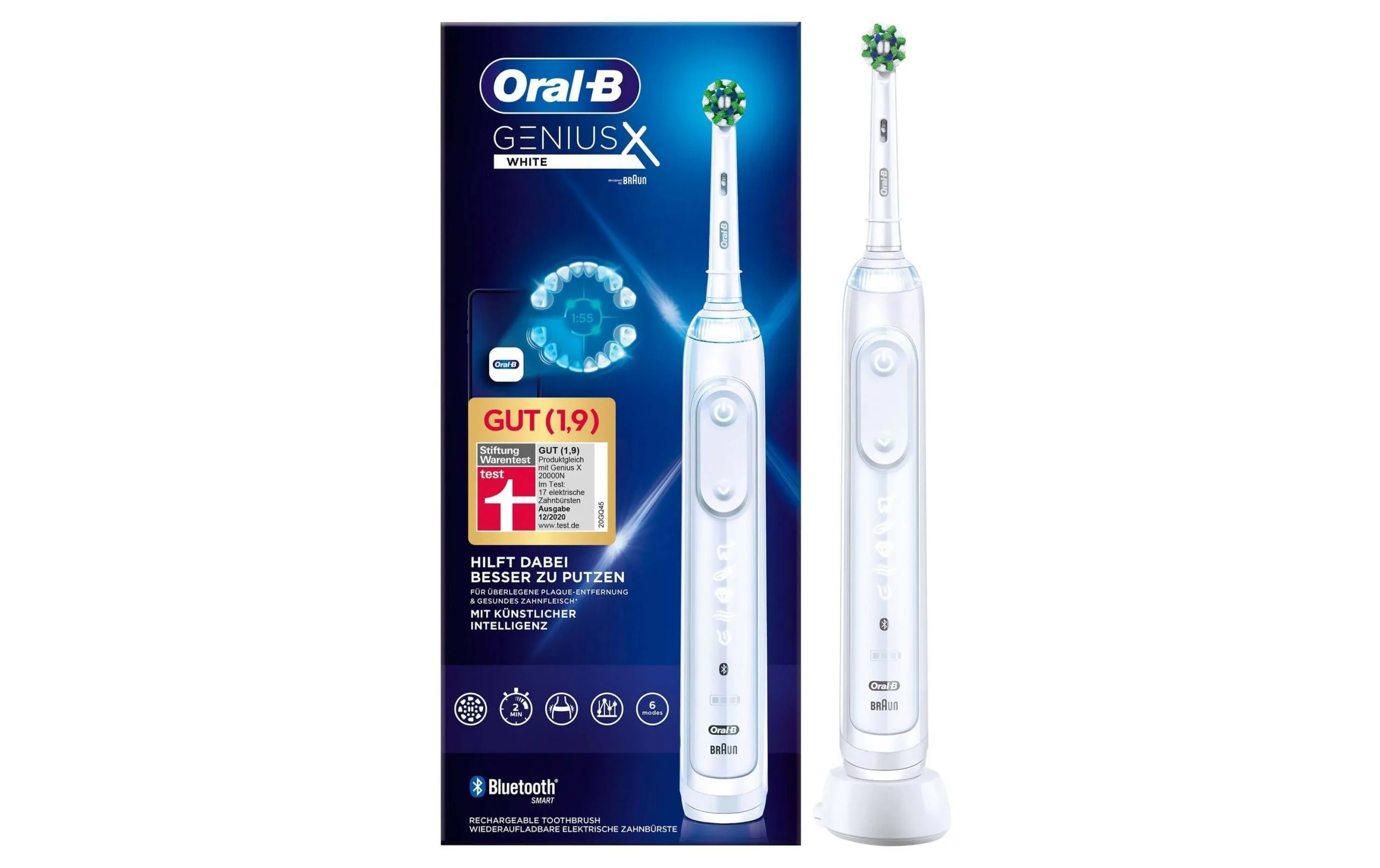 – 6 Putzprogramme: Tägliche Reinigung, Pro-Clean, Sensitiv, Aufhellen, Zahnfleischschutz und Zungenreinigung